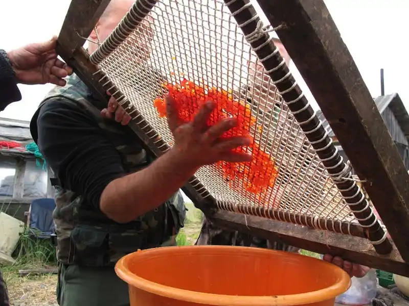 В первую очередь от того, насколько быстро рыба с икрой была доставлена на перерабатывающий завод. Как только рыба умирает, в её теле неизбежно начинаются процессы разложения, сказывающиеся и на икре. Быстро доставленная на фабрику рыба имеет упругую, сухую икру, которая пробивается (освобождается от ястыка) вручную (или автоматически) на грохотке: