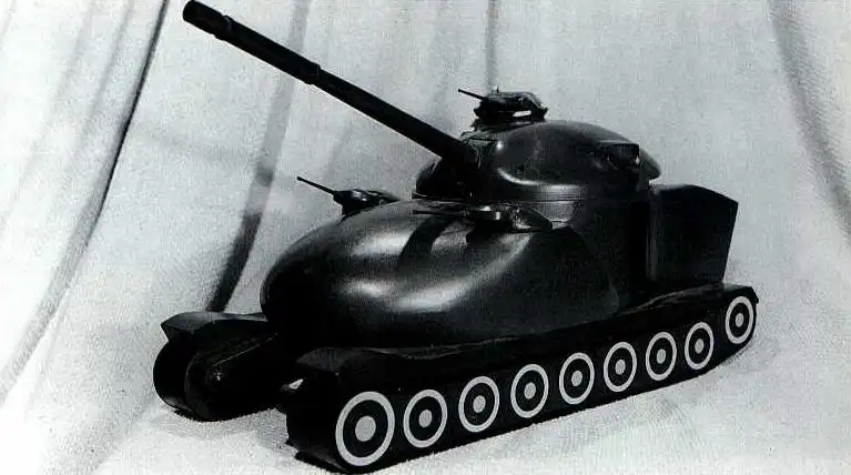 На третьей конференции по вопросам танкостроения (Question Mark III), проведённой армейским командованием в 1954 году, впервые был поднят вопрос о возможности создания ядерного двигателя для танка. В отличие от автомобильных концептов, тут не возникало серьёзных проблем с массой и объёмом: на танк вполне можно было поставить чуть модифицированный реактор от подлодки. Первый концепт тяжёлого атомного танка получил наименование TV-1. Предполагалось, что машина будет весить порядка 70 тонн (из них половина — двигатель), толщина брони достигала 350 мм. Но одну проблему в те годы решить никак не могли — экранирование экипажа. Если автомобильные дизайнеры могли позволить себе пофантазировать, то армейцы бурным воображением не отличались и смотрели на мир с эксплуатационной точки зрения. И что-то подсказывало инженерам, что атомный танк построить пока что невозможно.
