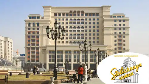 Водка «Столичная» - самый раскрученный бренд из тех, что «родом из СССР». В мире о ней знают не понаслышке: например, в Штатах Vodka Stolichnaya продается с 70-х годов. На этикетке русской водки №1 красуется важный символ столицы – здание гостиницы «Москва» (еще первой, той самой, проект которой, по легенде, согласовывал сам Сталин). К моменту «запуска» продукта соседка Кремля уже отметила свое 5-летие. Занимающая целый квартал «Москва» торжественно открылась в 1935 году, став одной из первых гостиниц в советской столице. Дизайн этикетки с тех пор практически не менялся: варьировался шрифт, затушевывались детали рисунка, но фасад здания по-прежнему хорошо различим. А вот сталинской «Москвы» уже несколько лет не существует – на месте разрушенной гостиницы стоит ее двойник-новодел.
