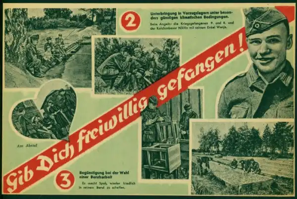 Немецкие пропуска в плен для советских солдат времен Великой Отечественной широко известны. Но и наш агитпром не оставался в долгу. В начальный период войны советские пропуска «не работали» – немцы наступали на всех фронтах, да и обращения к классовой сознательности, призывы повернуть оружие против эксплуататоров не воспринимались немцами, которые считали себя представителями определенного народа, а не определенного социального класса.