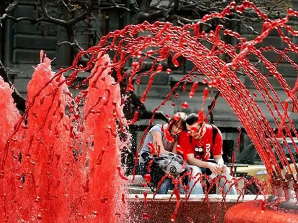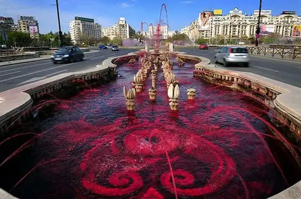Румынская ассоциация по проблемам гемофилии решила привлечь внимание общественности к 2000 гражданам страны, которые страдают от этого заболевания. В центре столицы был запущен фонтан с водой, окрашенной в кроваво-красный цвет.