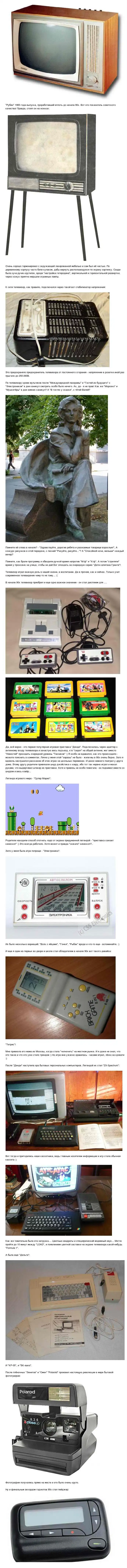 Электронные штучки и гаджеты были самыми интересными игрушками. Их берегли, хранили, чинили, гордились обладанием, хвалились. В этот пост я уместил всё то, что было у большинства российских семей.