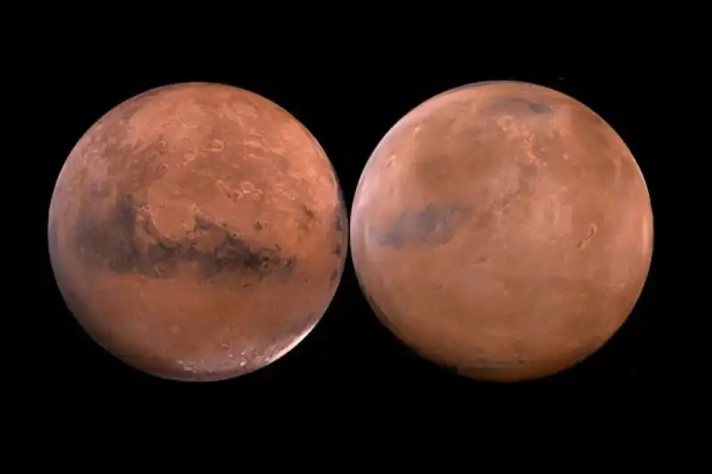 В то же время южная половина Марса - неровная и вся изрезана кратерами. Она примерно на 4-8 километров выше, чем северная часть. Недавние исследования предполагают, что такие различия между южной и северной сторонами планеты могли быть связаны с гигантским космическим телом, которое могло когда-то очень давно упасть на поверхность Марса.