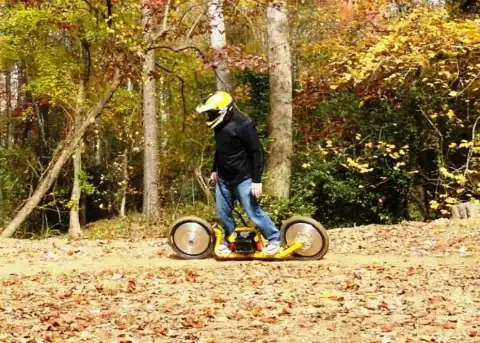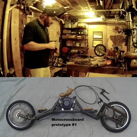 39-летний Энди Кил (на фото вверху) – заядлый сноубордист. Когда ему пришлось переехать в Джорджию, где возможности кататься по снегу не было, изобретатель принялся искать, чем заменить любимую доску. Первый опытный образец мотокроссборда Кил построил из подручных материалов в 2005 году. «Это был ад на колёсах», – усмехается Энди. Кстати, колёса у мотокроссборда 16-дюймовые (фото с сайта gizmag.com).