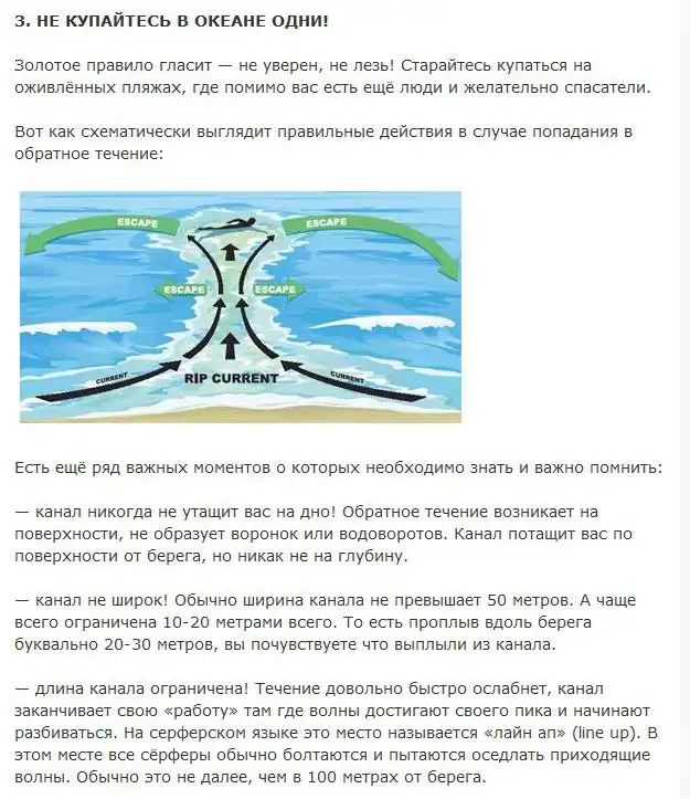 Смотрим далее подробную инструкцию о том, как не утонуть в море.