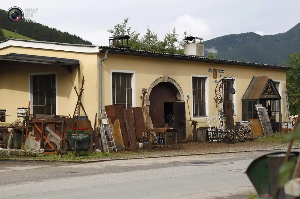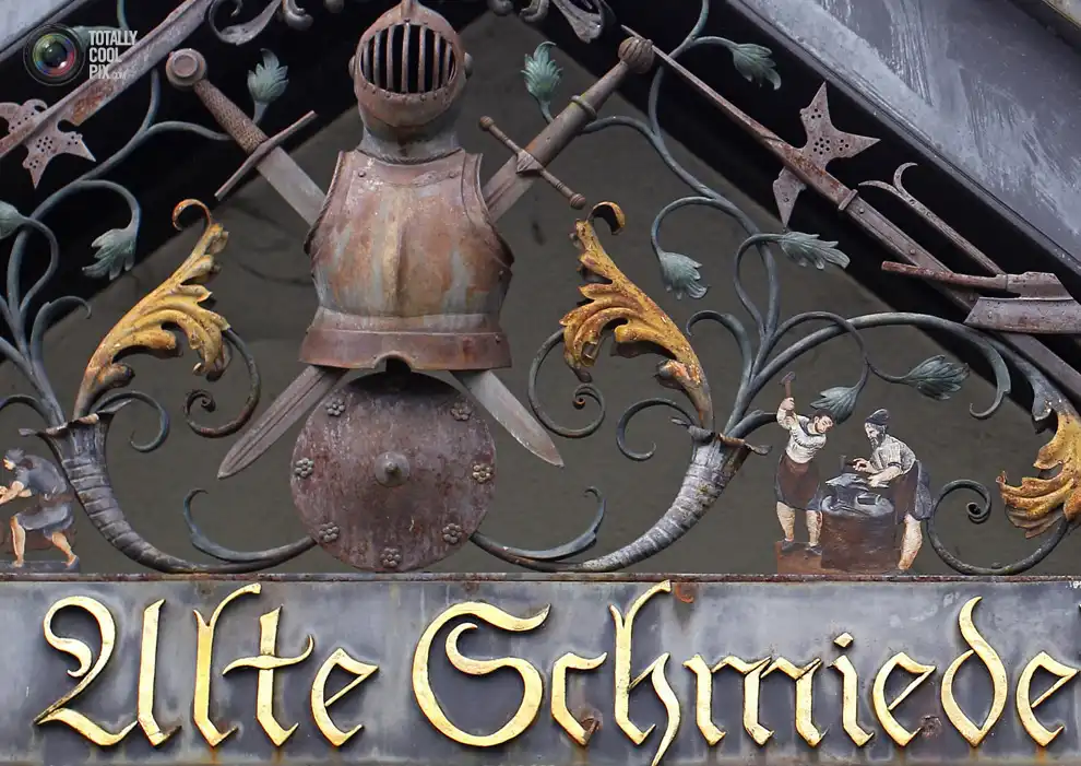 Вывеска «Старая кузница» на кузнице братьев Иоганна и Георга Шмидбергер в Мольне, Австрия, 12 июня 2012 года. 29-летний Иоганн и 28-летний Георг куют доспехи для Швейцарской гвардии Ватикана.