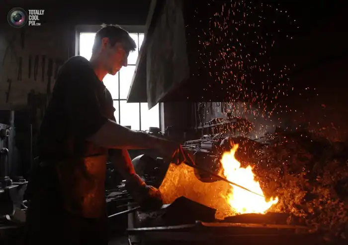 Братья Шмидбергер куют доспехи для Швейцарской гвардии Ватикана в своей кузнице в Мольне, Австрия.