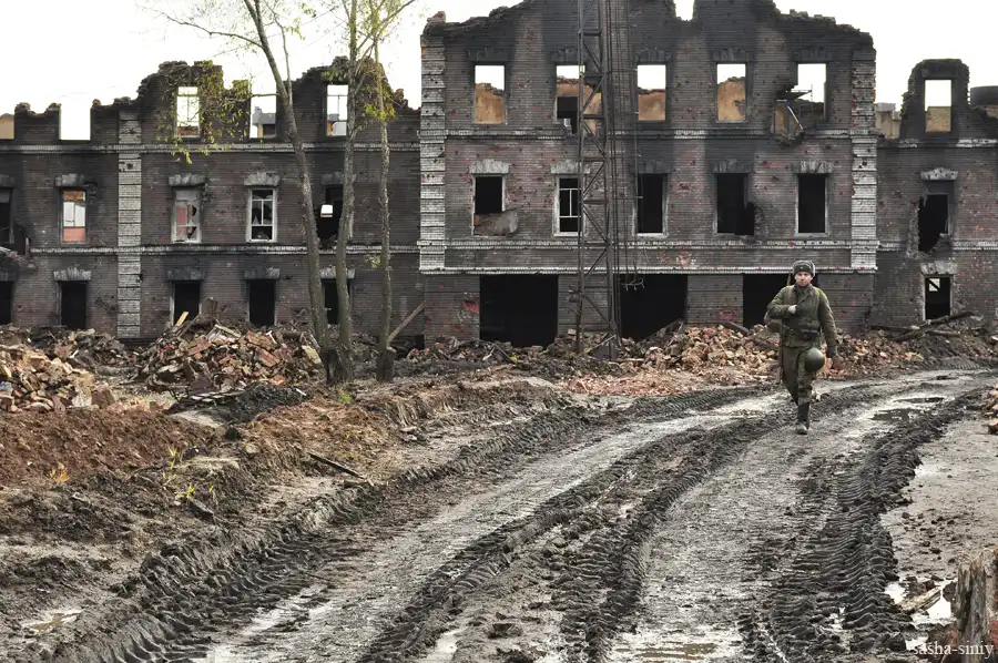 Прошлой осенью я ездил в Ярославль на съемки многосерийного фильма "Жизнь и судьба" по одноименному роману Василия Гроссмана.Хочу поделиться с вами порцией фотографий из той поездки. Сегодня я решил вам показать фантастические декорации Сталинграда в самый разгар одной из страшнейших битв в истории. Художники постарались на славу! Они построили целый город, разрушенный бесконечными бомбежками, обстрелами и уличными боями. Надо сказать, что когда я попал туда, ощущение внутри было жуткое. Все это выглядело настолько реально и страшно, что становилось не по себе, а мурашки бегали не переставая.