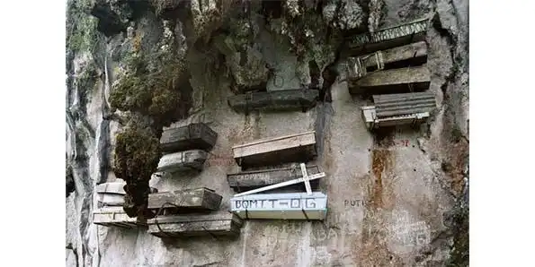 Гробы, повисшие на утесе – не редкость для таких мест, как: Китай, Индонезия и Филиппины.