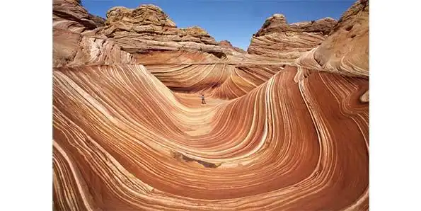 Это — одно из наиболее странных горных формирований песчаника в Соединенных Штатах, расположенное в Аризоне. Почти 200 миллионов лет назад область была просто пустыней, а сейчас здесь сформировалось вот такое образование — аризонская волна