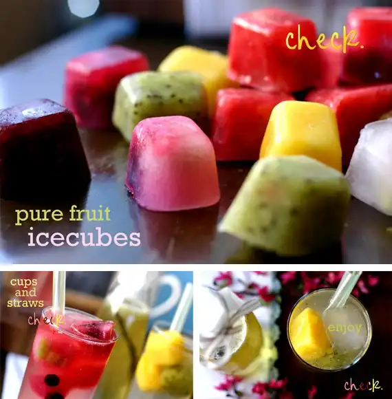 Жарко? Делаем лёд. Вот кубики льда с черникой, клубникой, с ломтиками лимона, фенхеля, мяты и т.п.