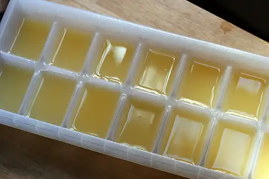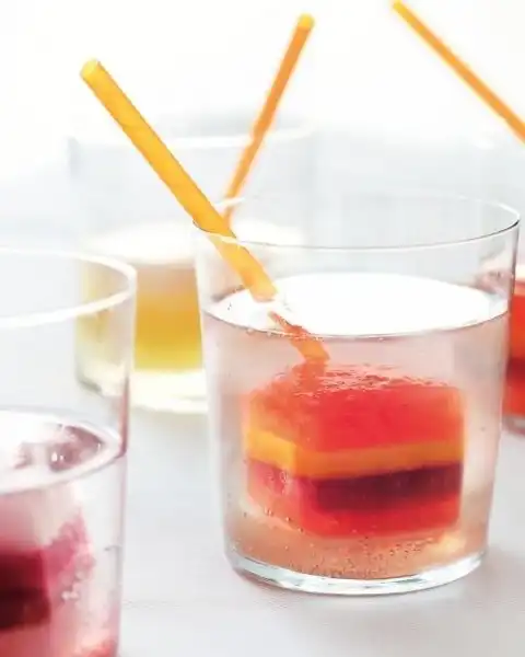 Поочередно вливайте каждый слой в форму для льда. Позвольте жидкости замерзнуть полностью перед заливкой другого слоя - это около часа.