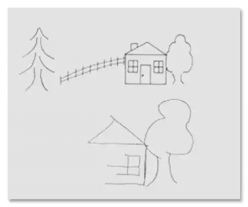 Она нарисовала полдома и сказала: «Готово. По-моему, получилось один в один». А когда её попросили закончить картинку, скорчила кислую физиономию и сказала: «Да у меня с деревьями как-то не очень» и «Зачем нужен этот забор, его же при первом же ветерке сдует!»