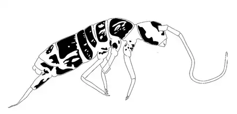 Тёмные пятна на теле самого глубоко живущего на суше существа (если не считать бактерии-экстремофилы и примитивных нематод) очень удивили учёных. Ведь в полной темноте пигменты животным не нужны (иллюстрация Rafael Jordana et al./ Terrestrial Arthropod Reviews).