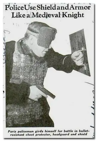 Этот парижский проект конца 1930-х годов трудно воспринимать всерьёз. Кажется, что эти доспехи склеены суперклеем на кухне этого же, не наигравшегося в детстве защитника правопорядка.