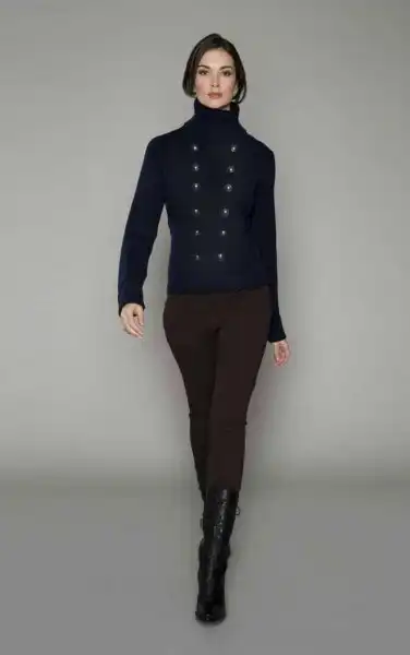 High-милитари - это чистый фетиш военной формы, а не ее точное воспроизведение. Накладные карманы, мелкие пуговицы, отложной воротник или стойка, широкие пояса-патронташи, накладные плечи, одноцветные темные галстуки, орденские ленты, украшения-ордена, широкие ремни с пряжкой - все это передает дух военной формы. Но сегодня в моде униформа не агрессивная, а женственная, а потому шьются брюки-карго и платья-милитари из мягкого атласа.