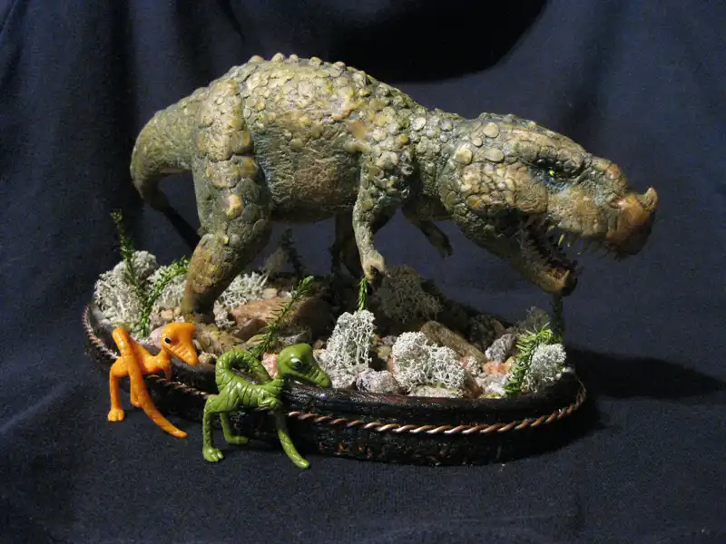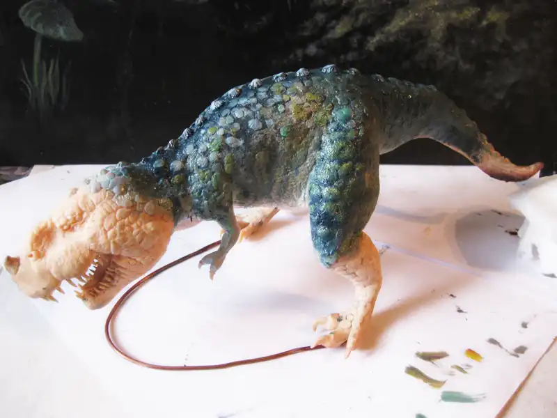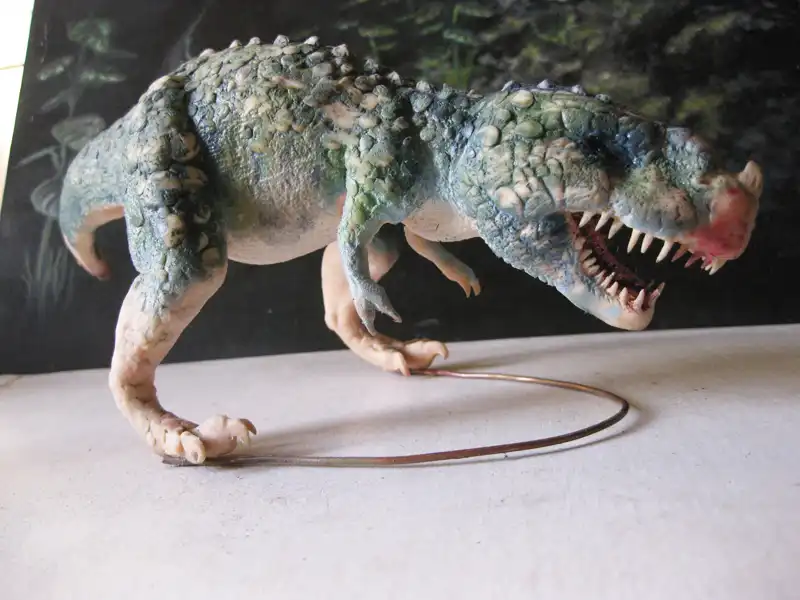 Когда я впервые прикоснулся к пластмассе для лепки, я сразу же решил, что первое, что я слеплю, будет Тиранозавр. Не хрюшка, не утка. Огромный, пахнущий болотом и землей, гулко хрюкающий зверь с мордой, разрезанной кривой зубастой улыбкой, не гнушающийся падалью и разбоем. Хозяин доисторического леса, вершина жратвенной пирамиды.