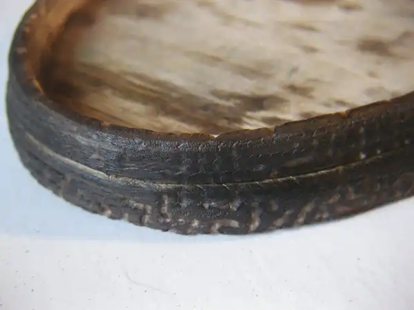 Потом бормашинкой круглым зуборежущим бором надо сделать узорчик. Мне в голову пришло что-то квадратное-непонятное, высосанное из пальца, что я потом с успехом сжег на горелке практически до углей.