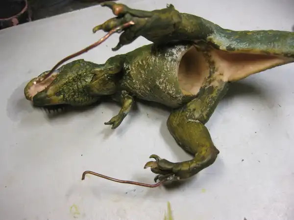 Начинается все со скелета. Зверь должен жить долго, поэтому подход к задаче основательный. Допущенные ошибки подпортили дальнейшую работу с изделием: крепление скелета к основе оказалось хреновым. Двух точек недостаточно, ибо фигура при обработке кивает, как болванчик.