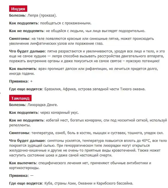 Коллекция самых страшных экзотических заболеваний,которые может подхватить обычный турист, пребывая в отпуске на различных курортах мира.