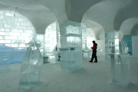 Icehotel – самый большой отель из снега и льда. Каждую зиму он отстраивается заново. Ежегодно художники и дизайнеры со всего мира собираются в шведском городке Юккасйярви для разработки будущего дизайна отеля и ледяных скульптур. Перед началом работы им приходится хорошенько утепляться, так как температура в отеле всегда минусовая.