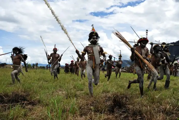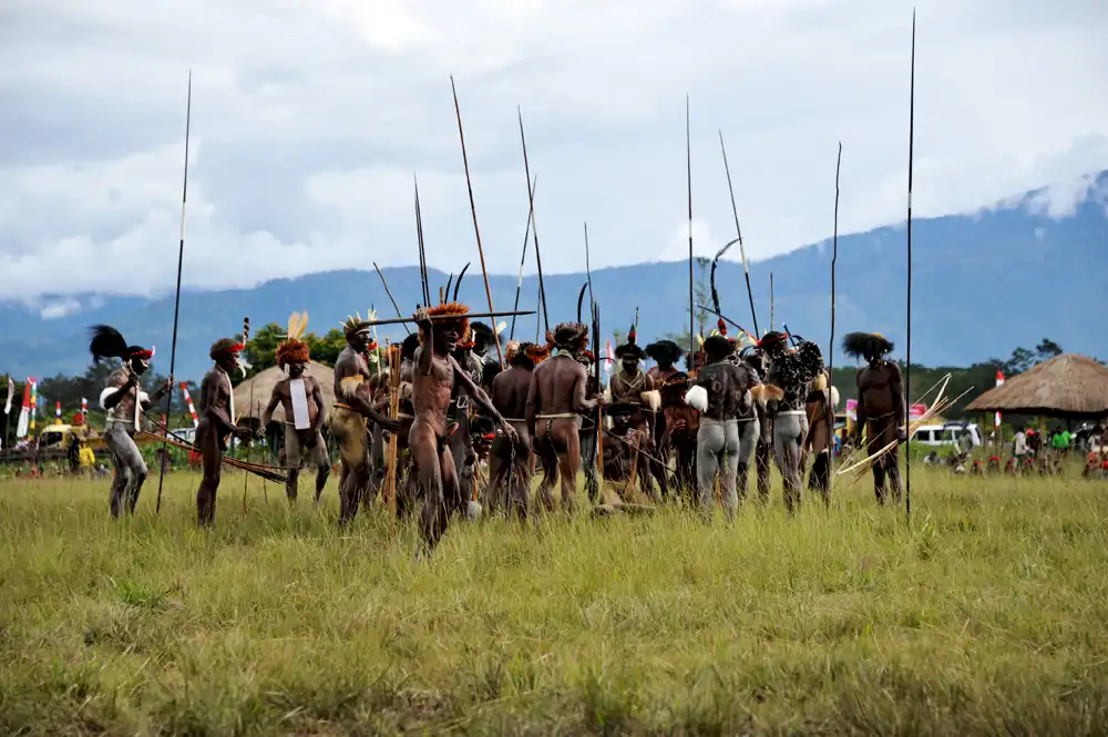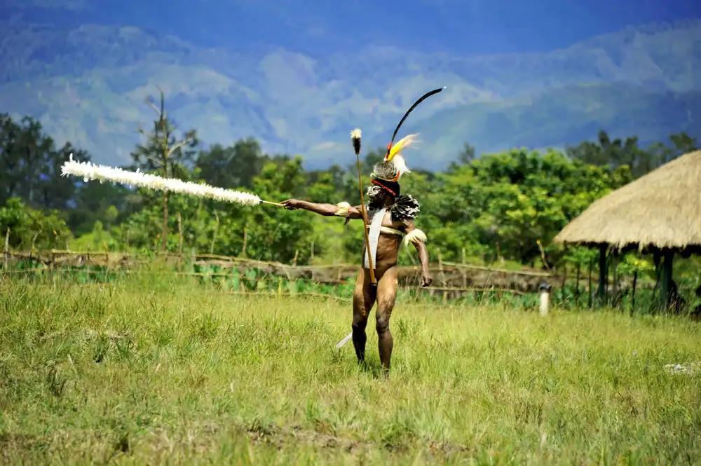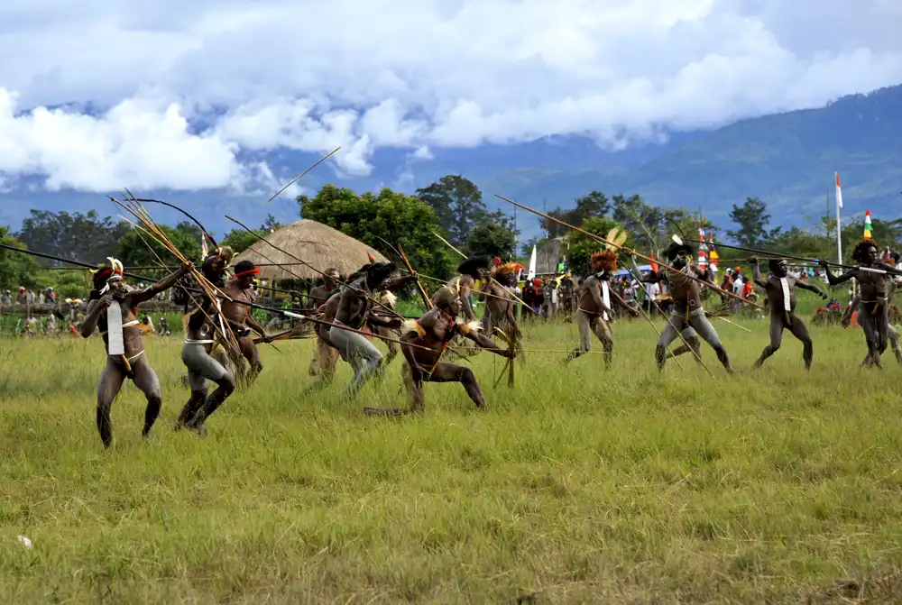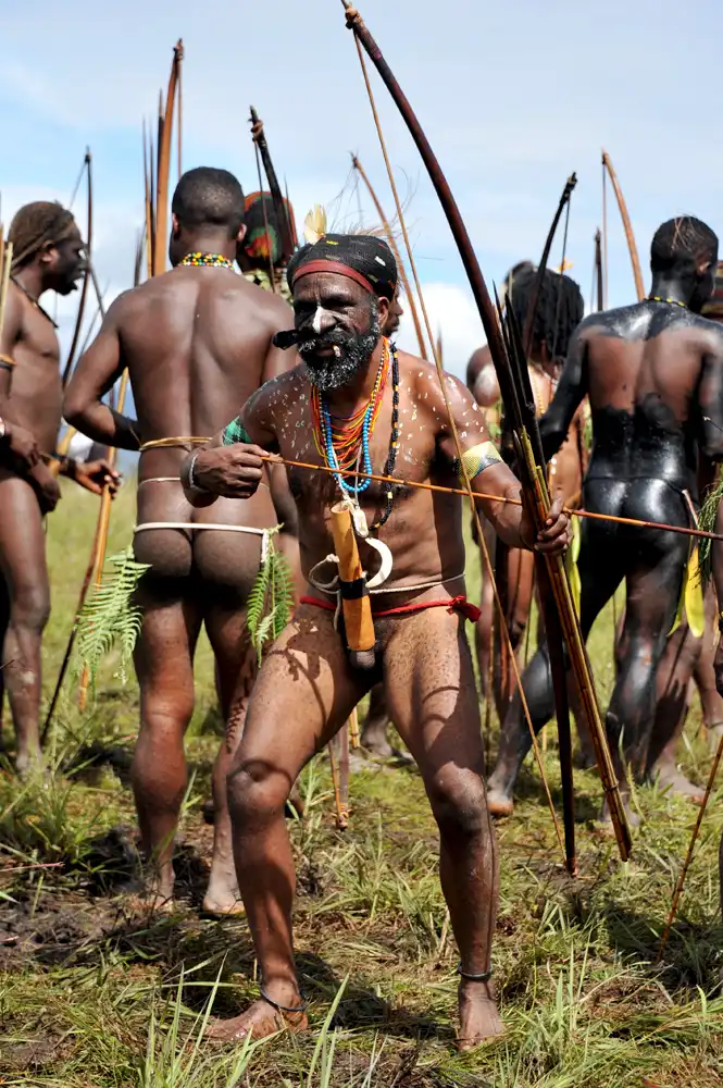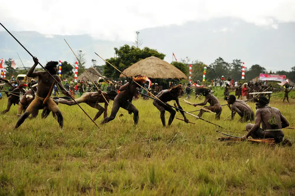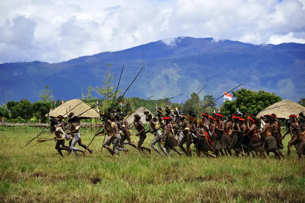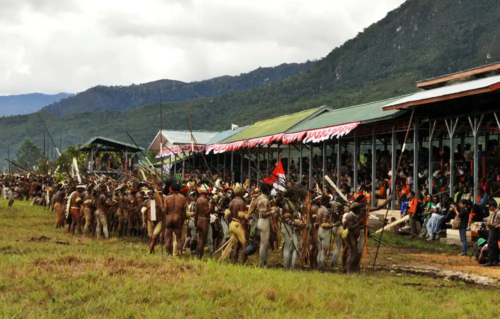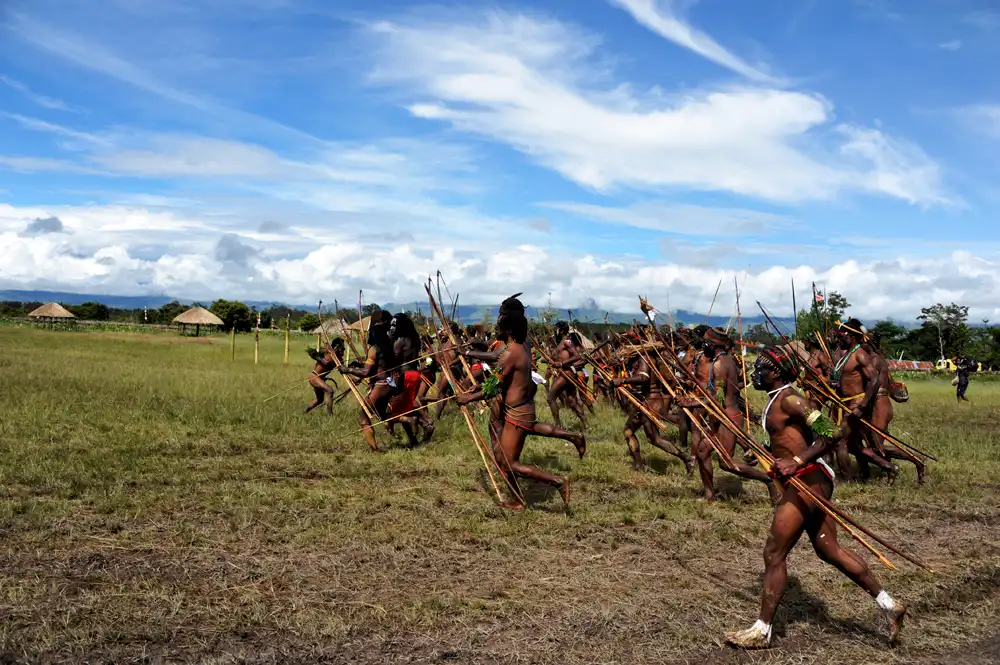 На трибунах собралось несколько десятков фотографов со всего мира, такое же число индонезийских бонз, а со всей округи стянулись представители народа дани. Но о некоторых особенностях папуасского праздника позднее, пока же высокие гости произносят краткие приветственные речи, а женщины и мужчины на периферии фестиваля измазываются глиной, наносят родовые узоры белой краской и бросаются в пляс.