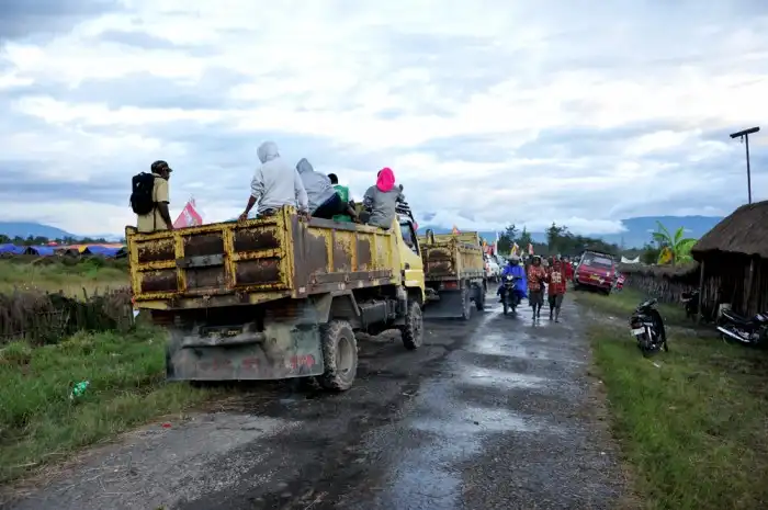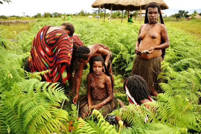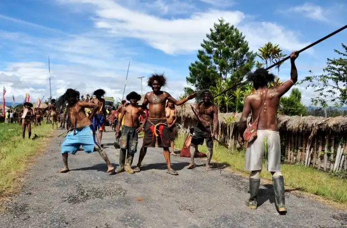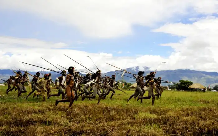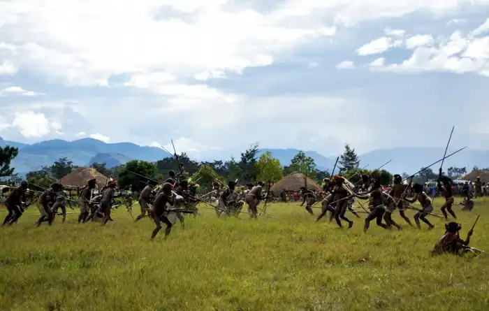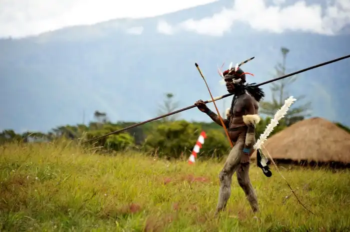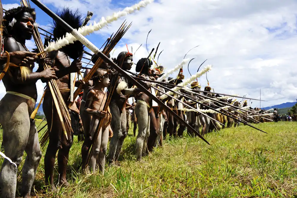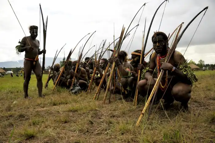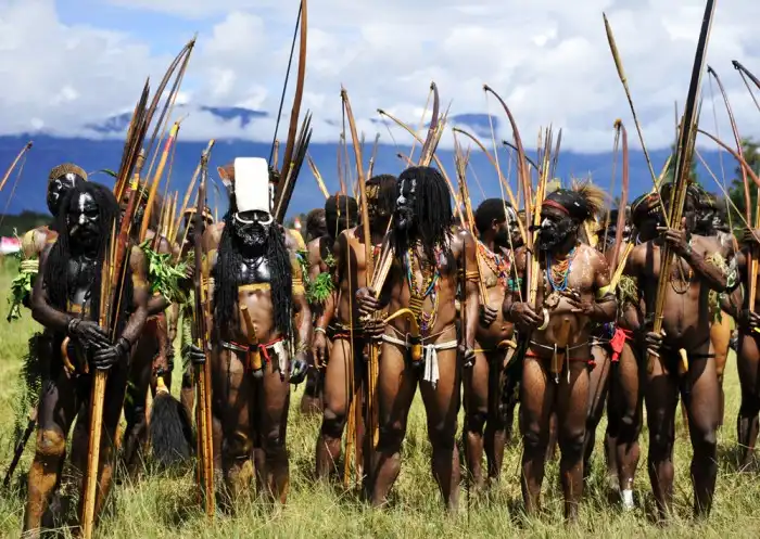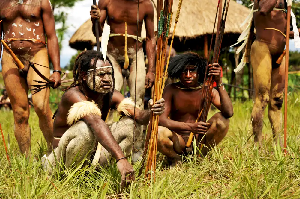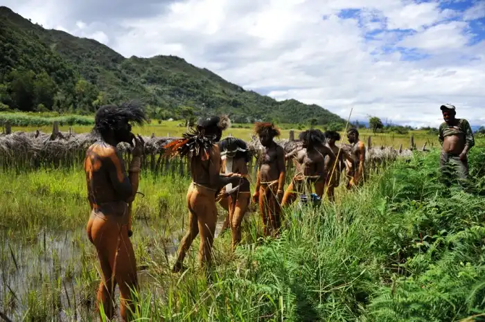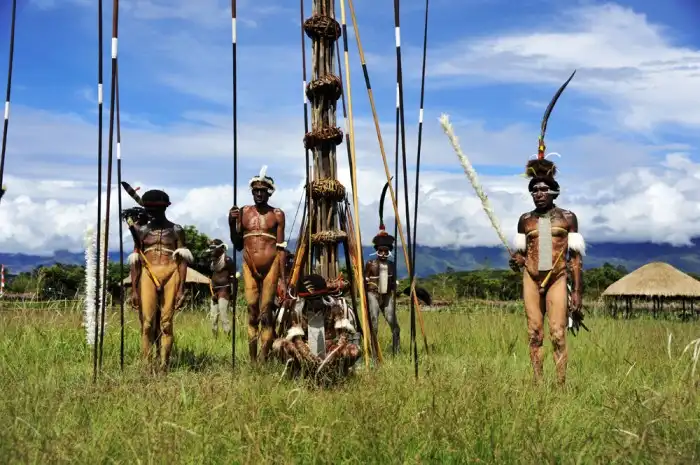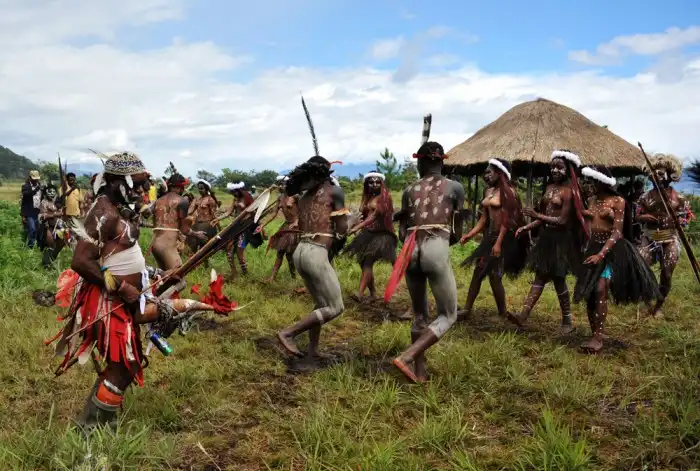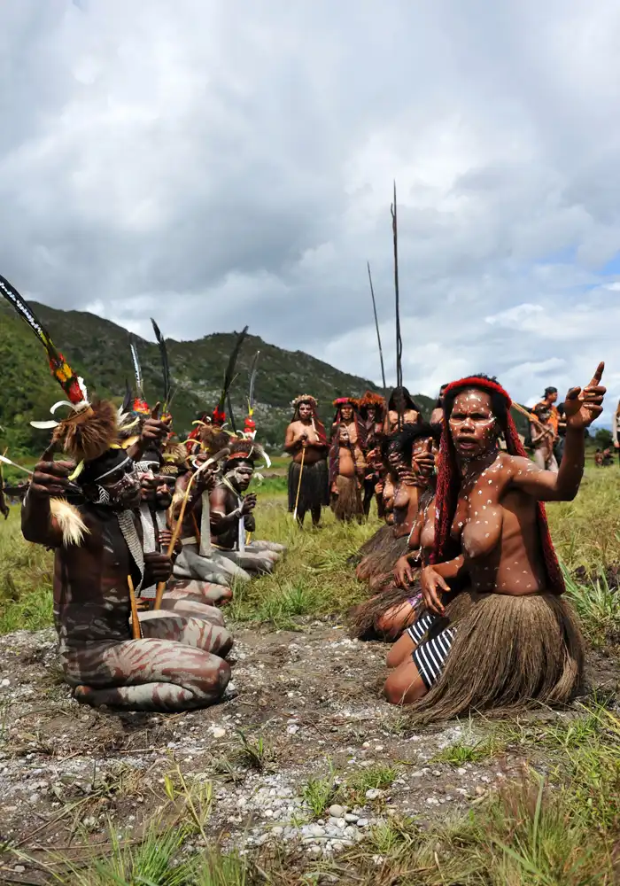 На трибунах собралось несколько десятков фотографов со всего мира, такое же число индонезийских бонз, а со всей округи стянулись представители народа дани. Но о некоторых особенностях папуасского праздника позднее, пока же высокие гости произносят краткие приветственные речи, а женщины и мужчины на периферии фестиваля измазываются глиной, наносят родовые узоры белой краской и бросаются в пляс.