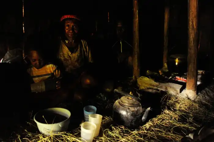 Но в хижине ужин. На этот раз вареный рис и морковка. Объедение! Саша приготовил чаю, с «шугаром», и нет ничего приятнее, чем лежать на сене у костра и слушать незнакомый папуасский язык. А они смеются наперебой, возятся с детьми, болтают, и здесь у них снова свой собственный каменный век.
