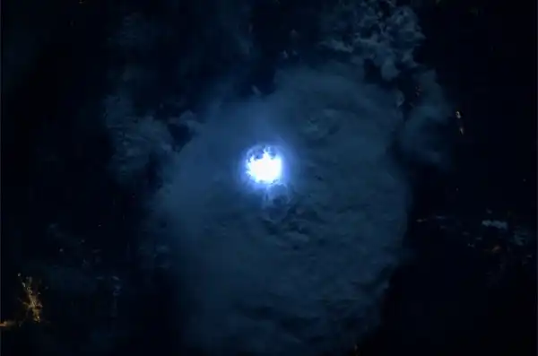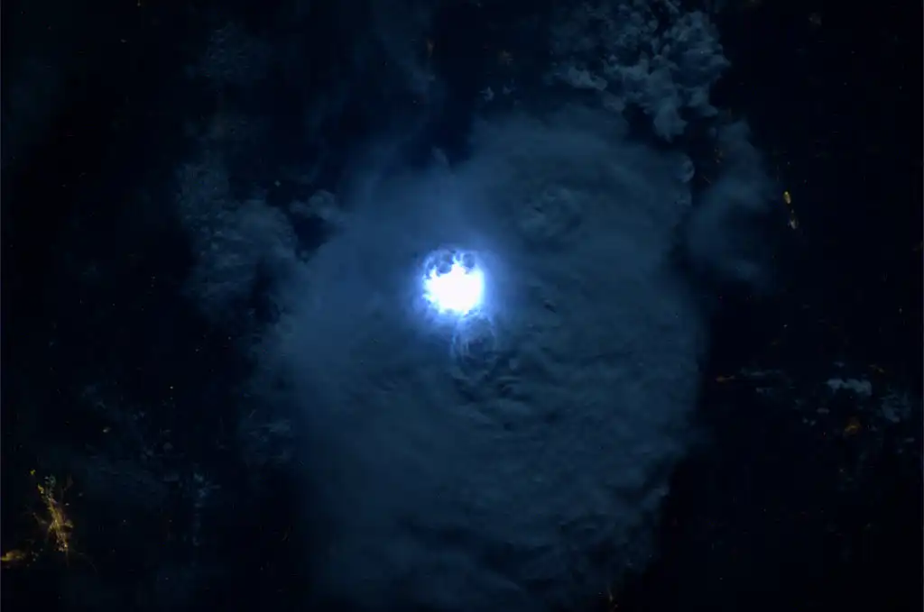 Вспышка молнии над Западной Африкой. (André Kuipers/ESA/NASA)