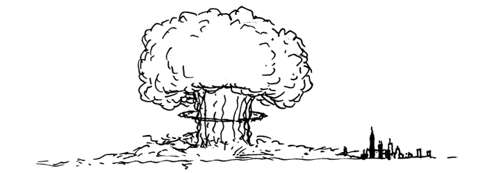 Поверхность облака будет все еще двигаться со скоростью, близкой к скорости света, когда достигнет отбивающего. Сначала она достигнет биты, затем отбивающего, ловца— и пойдет дальше. Все это будет уничтожено начисто. Поток рентгеновских лучей и перегретой плазмы будет расширяться, захватывая все новые объемы — команду поддержки, обе бейсбольные команды, сиденья — уже в первые микросекунды. Если бы вы смотрели на эту картину с холма, недалеко от города, вы бы увидели вспышку ослепительного, ярче солнечного, света, которая бы через несколько секунд затухла — и растущий огненный шар поднялся бы в воздух, превращаясь в грибовидное облако. Затем, с оглушающим ревом, пришла бы взрывная волна, поваливая деревья и разрушая дома.