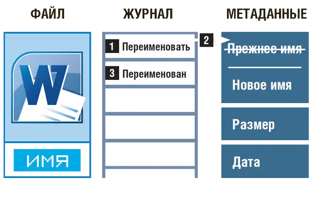 1. NTFS записывает в Журнал, что имя файла должно быть изменено. Там же NTFS регистрирует все действия.