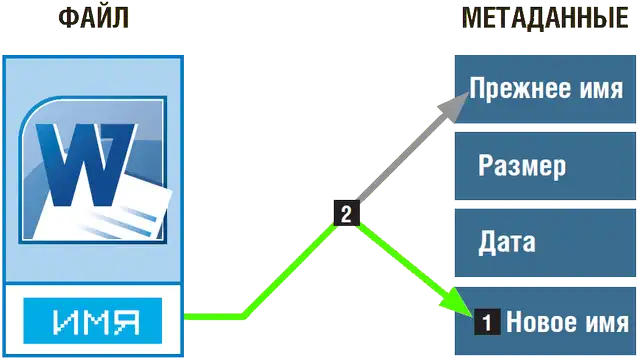 2. Как только новое название записано, ReFS изменяет ссылку на поле имени. Теперь в файловой системе она ведет не на старое имя, а на новое.