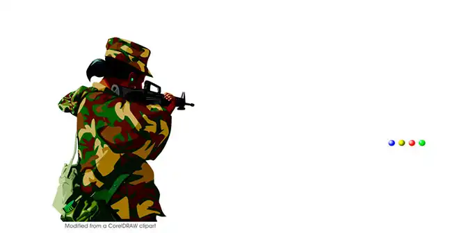 Суть иллюзии: на глаз очень сложно определить в какой из шариков направлена линия, являющаяся продолжением ствола автомата.