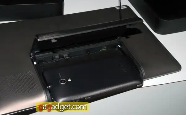 Планшетный модуль называется у Padfone словом станция (station) и может использовать 8-мегапиксельную камеру смартфона. При этом имеет собственную 1.3-мегапиксельную фронтальную камеру, весит 724 грамма с батареей при размерах 273х177х14 миллиметров. Разрешение его 10.1 - дюймовой матрицы составляет 1280х800 точек. Asus утверждает, что станция увеличивает время работы телефона в 5 раз, а вместе с клавиатурой - в 9 раз. Проверить все эти утверждения мы сможем, видимо, уже в апреле, когда Padfone поступит в продажу. О цене пока ничего не известно.