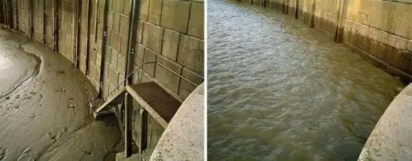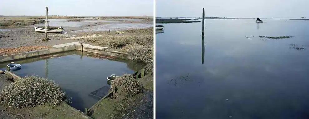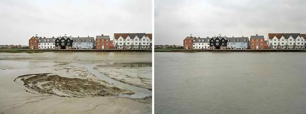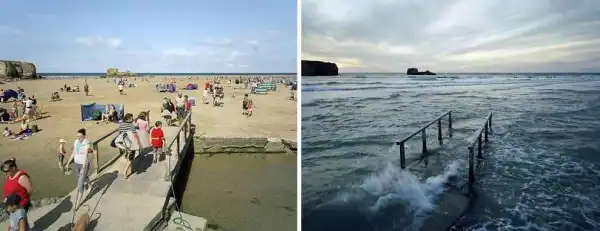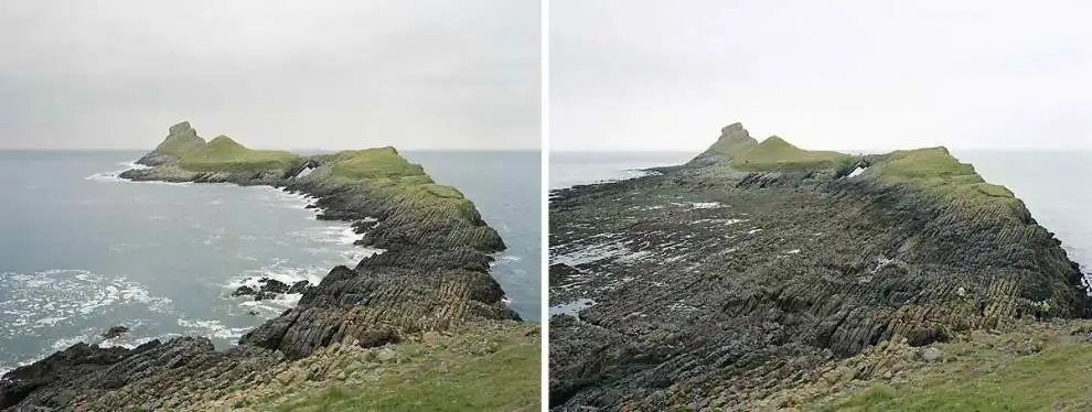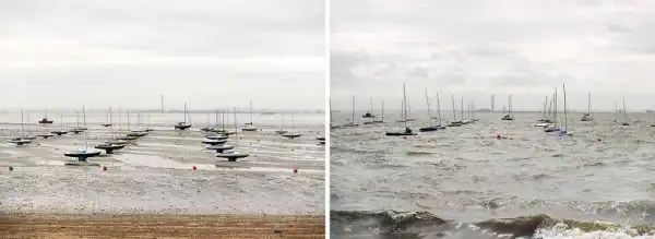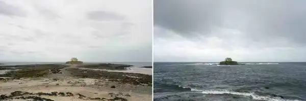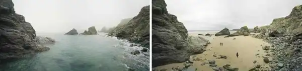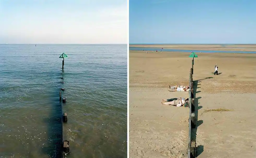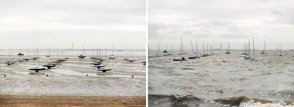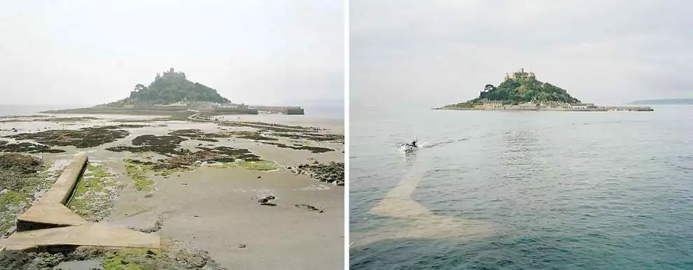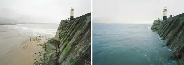 Британский фотограф Майкл Мартин (Michael Marten) создал серию оригинальных снимков, фиксирующих побережье Бритаиии в одинаковых ракурсах, но в разное время. Один снимок во время прилива, а второй во время отлива.