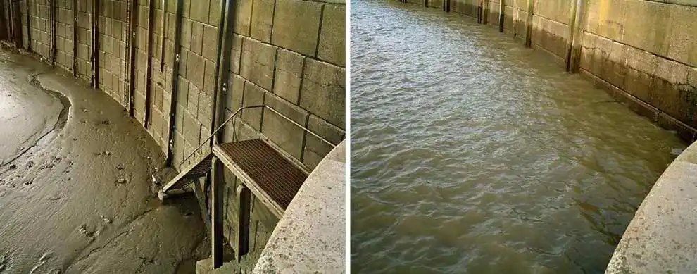 Диапазон отметок полных и малых вод в этом случае сокращается приблизительно в три раза по сравнению с сизигийным приливом.