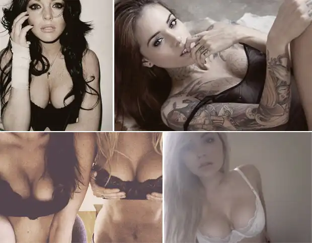 Снимки женской груди, которые акцентированы на глубокий вырез одежды или бюстгальтер, придающий форму