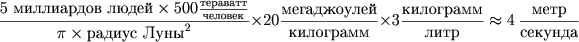 Хотя, в этом есть определенный смысл. Солнце освещает Луну с мощностью порядка киловатта на квадратный метр. Так как сечение Луны имеет площадь порядка 10^13 квадратных метра, на нее попадает примерно 10^16 ватт солнечного света — 10 петаватт или два мегаватта на человека, что затмевает возможности наших пятимилливаттных лазеров. Конечно, числа могут слегка варьироваться, но в общем и целом все выглядит именно так.