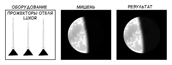 Конечно, результат тяжело увидеть, но он есть! Луч создает освещенность в 20 люкс, увеличивая силу светового потка от неосвещенной половины Луны в 2 раза! Так или иначе, это тяжело разглядеть, а видимого эффекта на светлой половине практически нет.