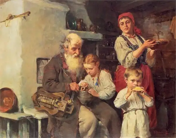 Казимир Похвальский. "Лирник перед хатой". 1887 г.