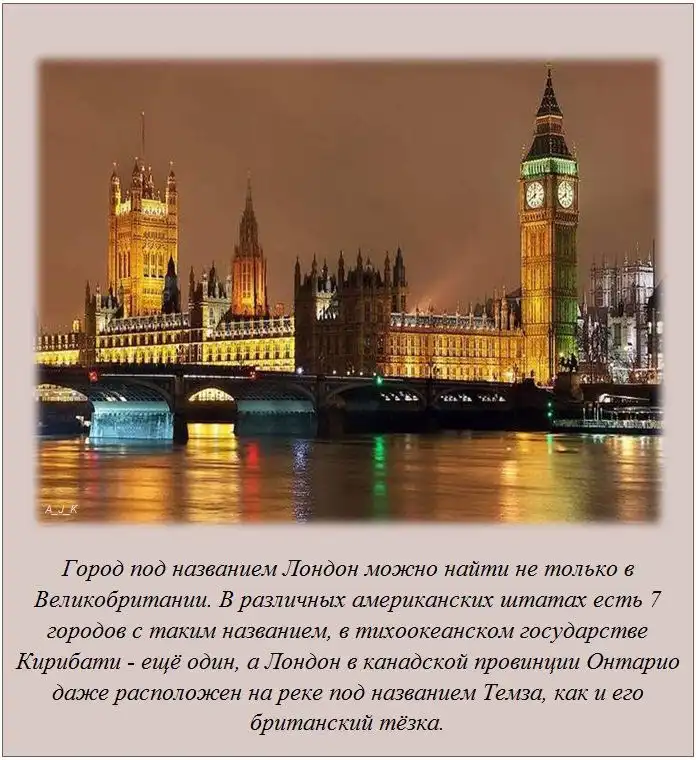 Вообще говоря, это относится не только к Лондону. Названия повторяются довольно часто. К примеру, Москва и Санкт-Петербург тоже есть в США. И Грузия (Джорджия) там есть.