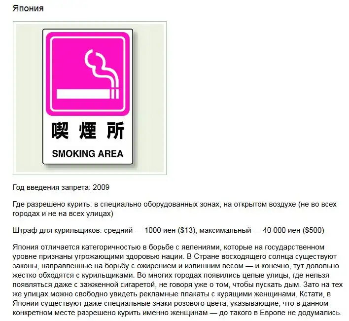 Давайте посмотрим, как к курению относятся в некоторых странах мира,