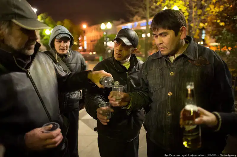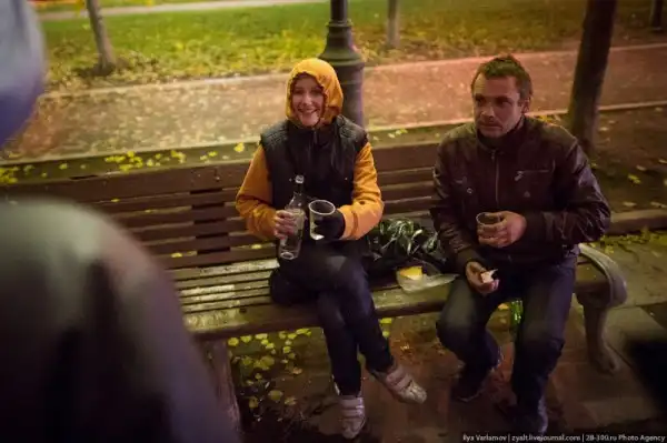 Через пятнадцать минут пары сивухи притянули еще троих. На этот раз в компании была девушка: она отказалась разговаривать с нами и долго пряталась от объектива.