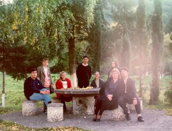 А на этом снимке супружеская чета сахаджа йогов на природе в приятельской компании. Отличить их не трудно...