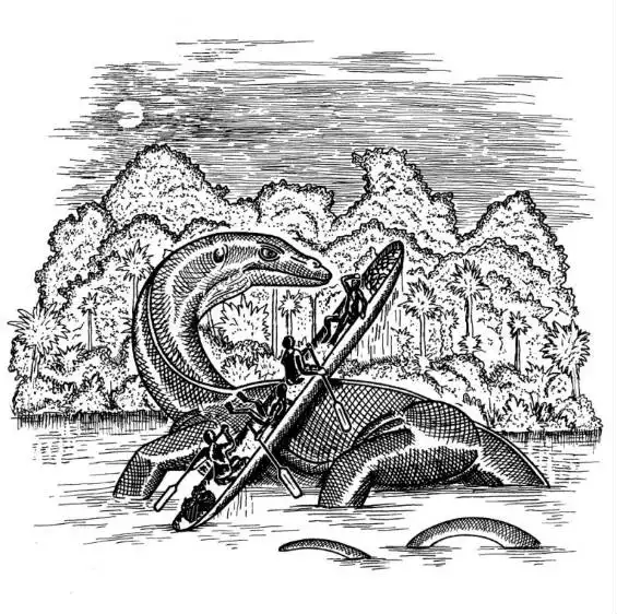 Мокеле-мбембе – криптид, очень похожий на динозавра Конгамато из Конго. Его имя означает «тот, кто останавливает течение рек» – имеется в виду его гигантский размер. Десятки экспедиций пытались найти это существо, но возвращались только с рассказами очевидцев и снимками отпечатков огромных лап.