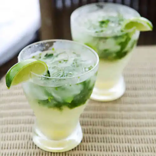 Рецепт: в высокий стакан кладутся 2 чайные ложки сахара и пучок мяты, затем наливается 50 мл содовой. После этого в бокал отжимают разрезанный пополам лайм, после чего кладут в него вторую половину фрукта. После чего добавляют 60 мл рома. Смешать, наполнить бокал льдом и снова налить немного содовой. Украсить веточкой мяты.