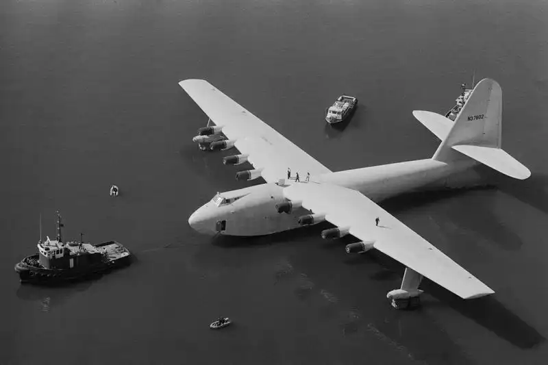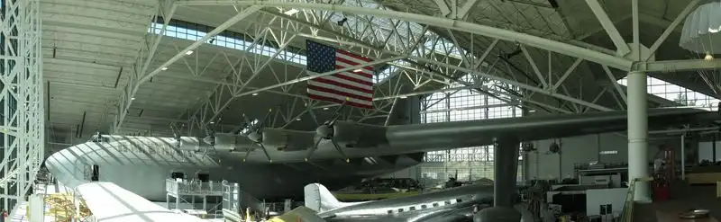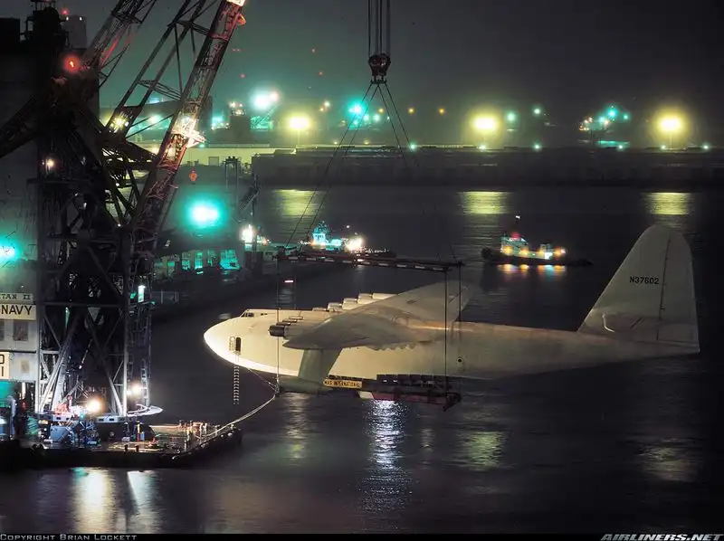 В начале Второй мировой войны правительство США выделило Хьюзу 13 миллионов долларов на изготовление прототипа летающего судна, но к окончанию военных действий летательный аппарат готов не был, что объясняется нехваткой алюминия, а также упрямством Хьюза, стремившегося создать безупречную машину. Самолёт Hercules, пилотируемый самим Говардом Хьюзом, совершил свой первый и единственный полёт только 2 ноября 1947 года, когда поднялся в воздух на высоту 21 метр и покрыл приблизительно два километра по прямой над гаванью Лос-Анджелеса. После длительного хранения самолёт был отправлен в музей Лонг-Бич, Калифорния. В настоящее время является экспонатом музея Evergreen International Aviation в McMinnville, Oregon, куда был перевезён в 1993 году. Но давайте обо всем по порядку ...