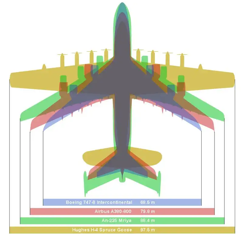 В мире есть самолеты длиннее, есть грузоподъемнее, но совершивший первый полет в 1947 году "Геркулес" до сих пор является непревзойденным по размаху крыльев (97,5 м), а по высоте до кончика киля с ним смог сравняться только новейший А-380-800.
