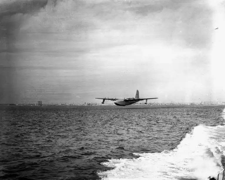 2 ноября 1947 года «Геркулес» был спущен на воду и Говард Хьюз и его небольшой экипаж запустили двигатели в тестовом режиме. Совершив несколько проходов по воде, на глазах у взволнованных зрителей, преимущественно журналистов, наблюдавших за перемещениями судна, «Геркулес» оторвался от поверхности гавани Лос-Анжелеса, отправившись в свой первый и последний, необъявленный полет. Сам Хьюз находился за штурвалом.