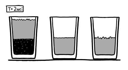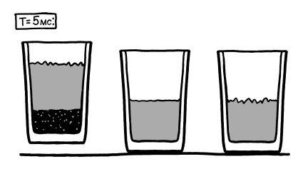 В это же время стакан слева начинает заметно приподниматься в воздух.